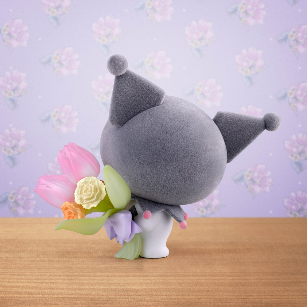 «Kuromi» ya está disponible en la marca de figuras «mofamofy», que presenta suaves peluches y ramos transparentes y coloridos. Se caracteriza por su textura esponjosa, un ramo transparente y colorido, encantadores ojos brillantes y una figura regordeta. Siente la calidez de Mofu Mofu, rodeada de flores… Esta marca de figuras te brinda sanación en tu día a día. Inspirada en el corazón de doncella de Kuromi y su amor por todo lo romántico, las flores del ramo son tulipanes y claveles, que representan «una confesión de amor» y «amor puro» en el lenguaje floral.