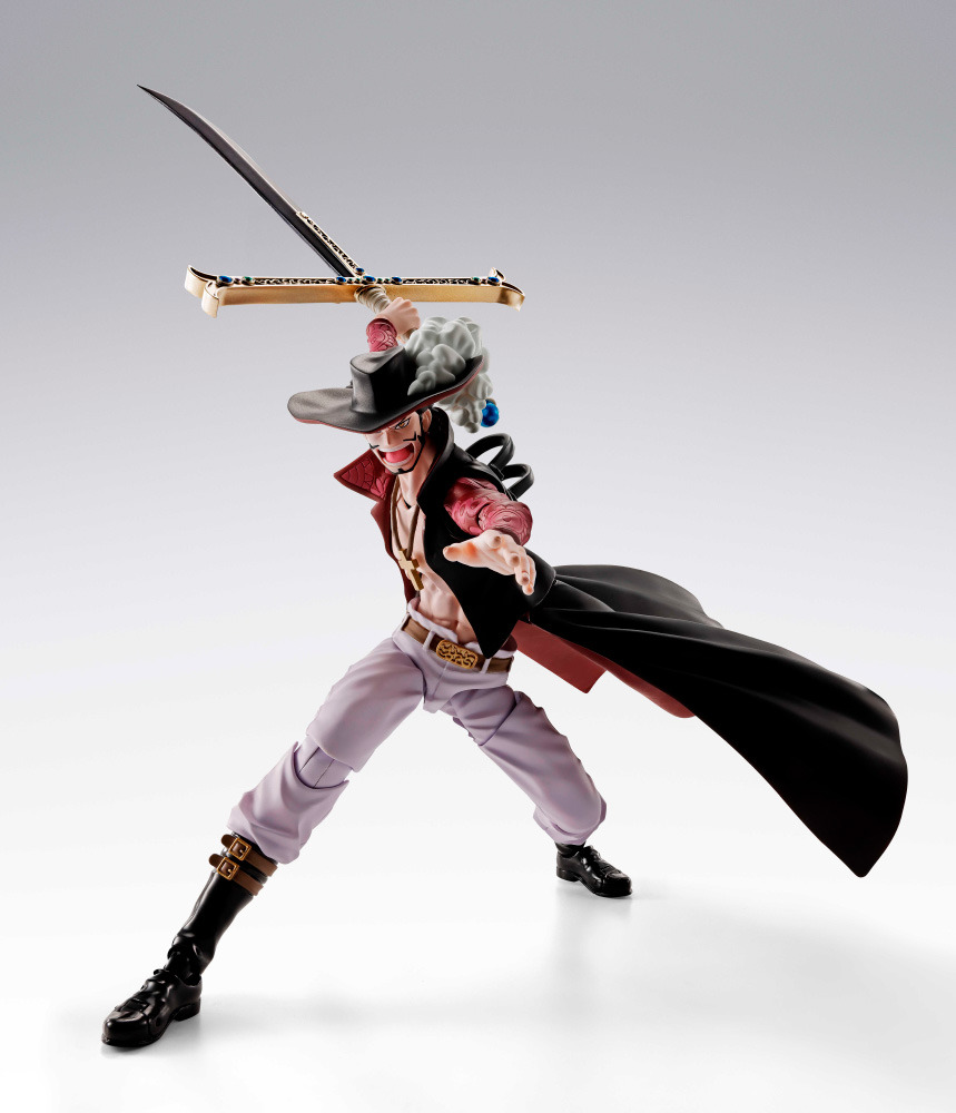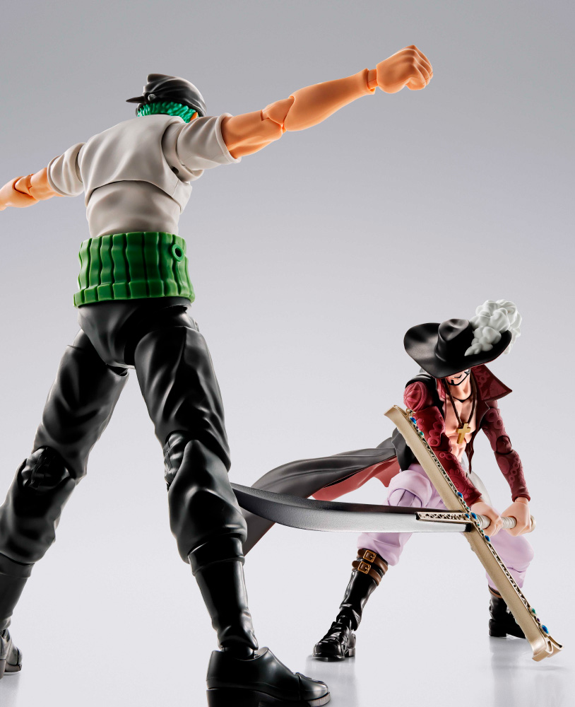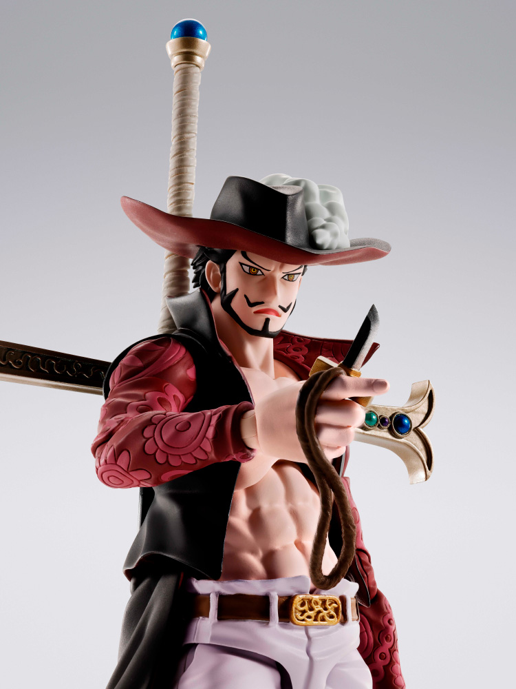 Zarpa rumbo a One Piece con la última incorporación a la línea de figuras de acción S.H.Figuarts de Bandai: ¡ha llegado Dracule Mihawk!Considerado uno de los espadachines más fuertes del mundo, esta impresionante figura representa al pirata tal como se le vio durante su primer encuentro con los Piratas del Sombrero de Paja en el restaurante flotante Baratie. Equipado con su gigantesca espada Yoru y diseñado con articulación dinámica, ¡este es un pirata con el que no querrás cruzarte!